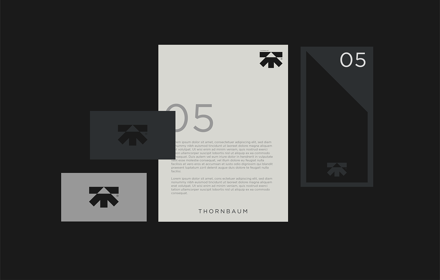 Gotham Standard字體的簡潔現(xiàn)代感與野獸派建筑的堅固和簡約特質(zhì)不謀而合。字體的直線條和幾何形態(tài)與Thornbaum建筑作品的硬朗外形相契合,這使得品牌的視覺傳達更加直接、干練。